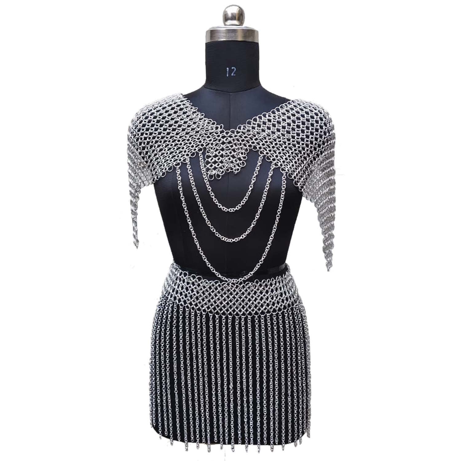 - Authentic chainmail shoulder cape with skirt design