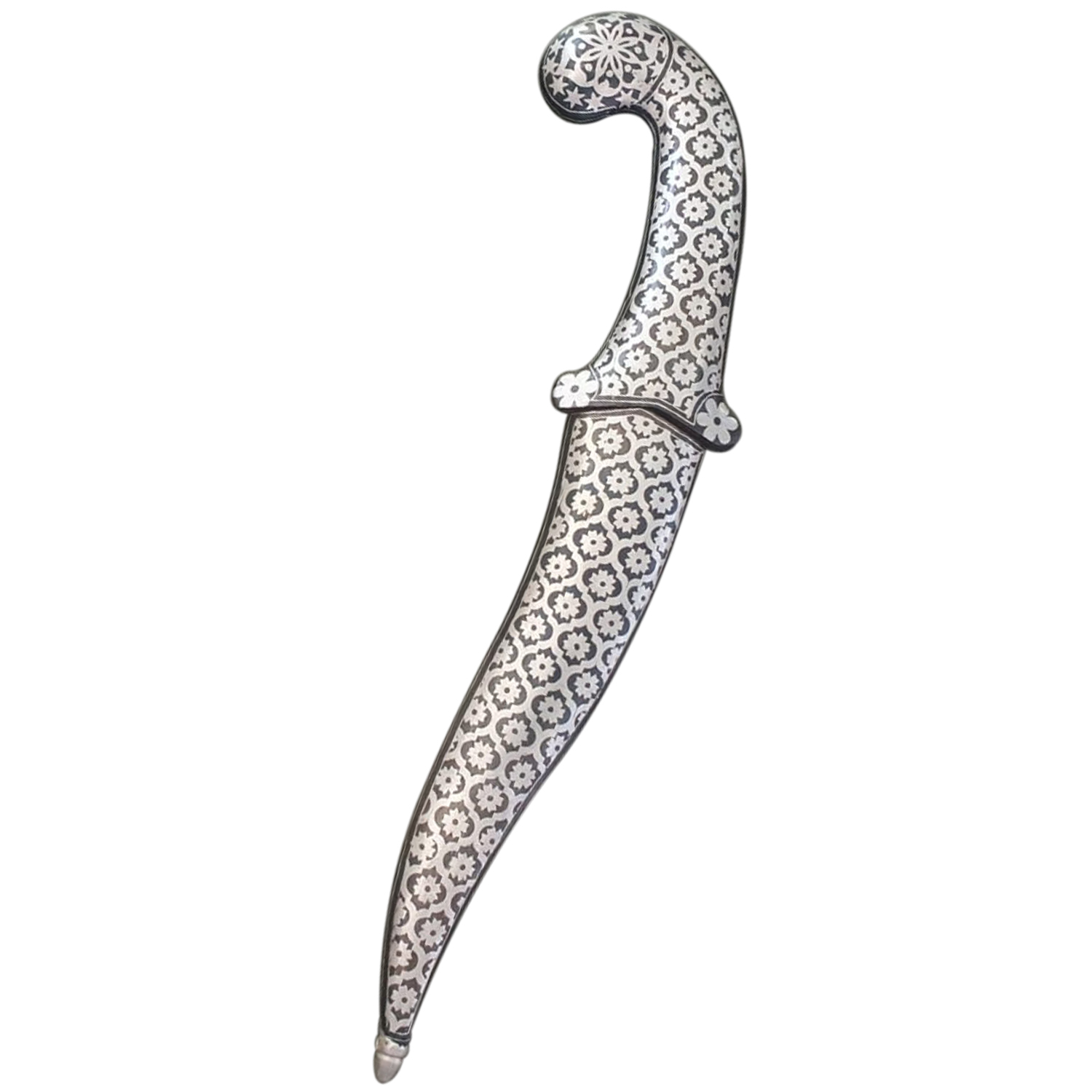 Handmade by skilled artisans, the DM32 dagger is designed with care and precision. The curved form evokes classical Middle Eastern daggers, while the floral motifs give it a refined, decorative appeal.