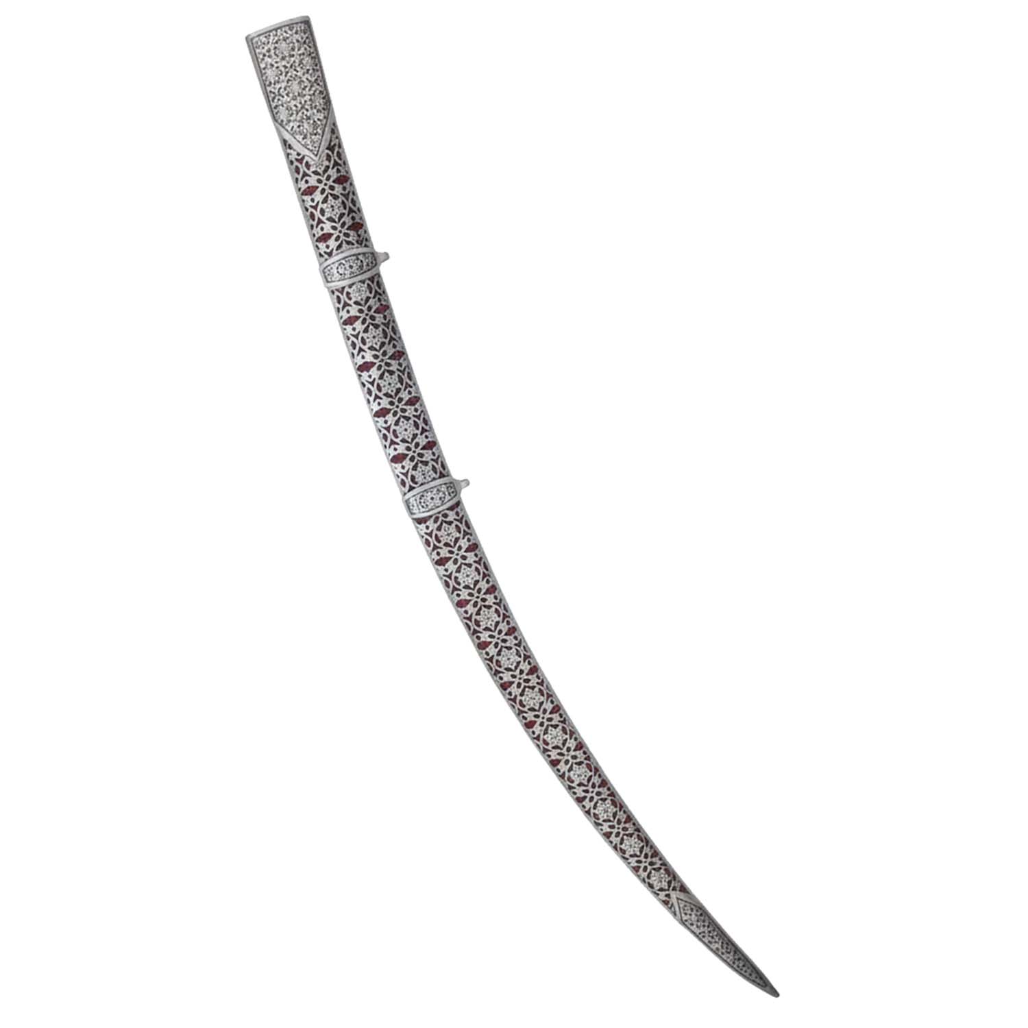 The sword features a finely crafted curved steel blade with a smooth polished finish. The curve enhances its traditional look and adds historical accuracy. In addition, the blade design complements the overall balance of the sword. This makes it visually striking and suitable for premium décor.