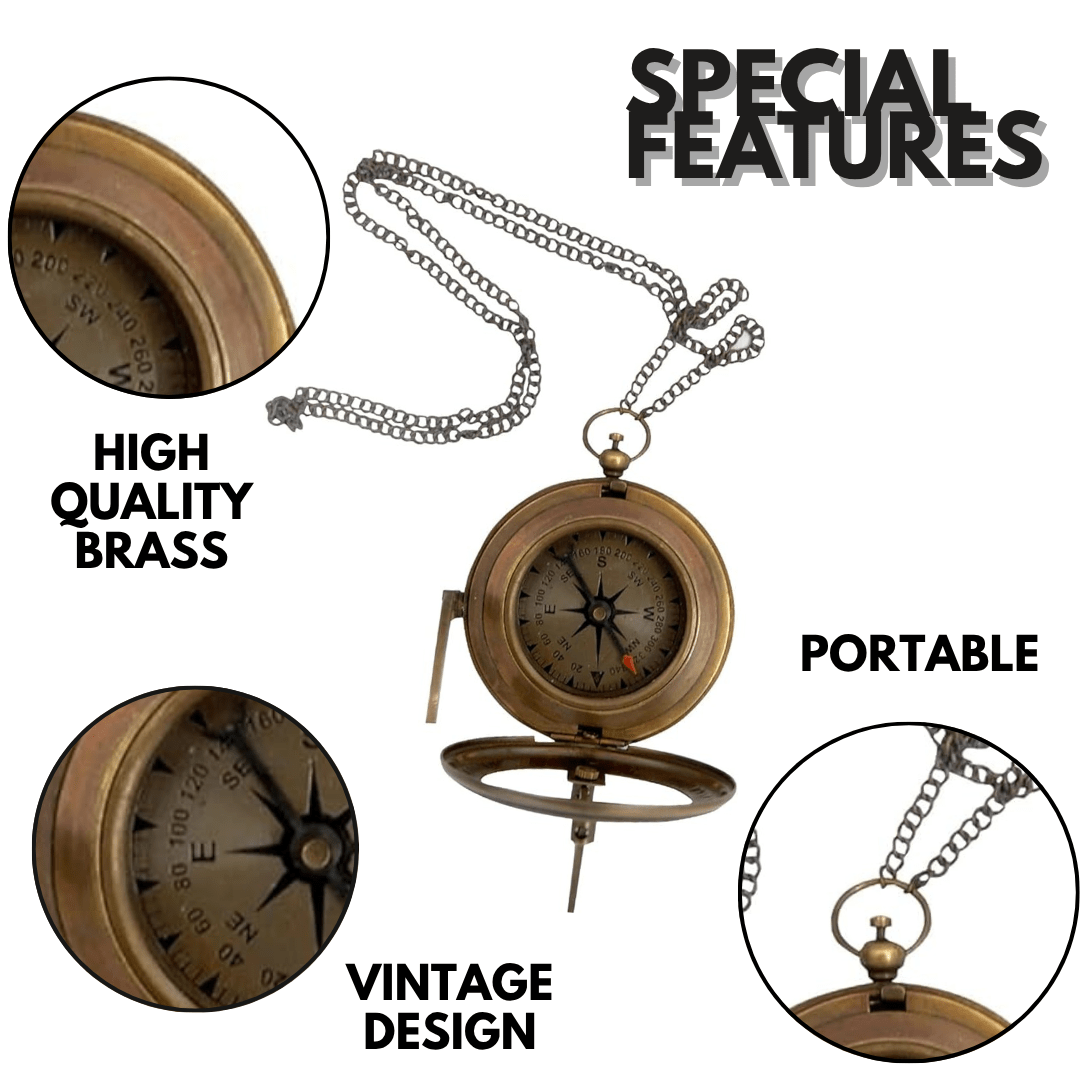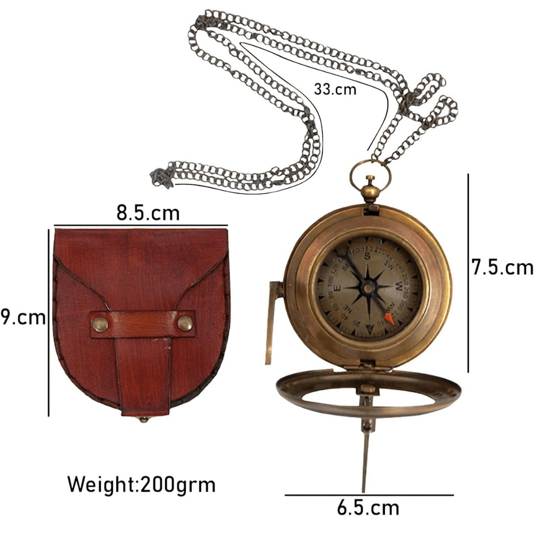 Constructed from high-quality brass, the compass exudes authenticity and durability. Its vintage design pays homage to the navigational instruments of yesteryears, evoking a sense of nostalgia for the golden age of seafaring. The intricate engravings adorning the brass casing add to its charm, depicting symbols and markings reminiscent of classic maritime navigation techniques.