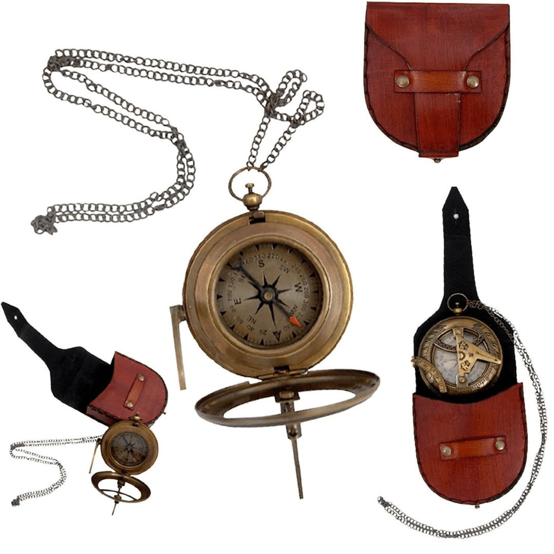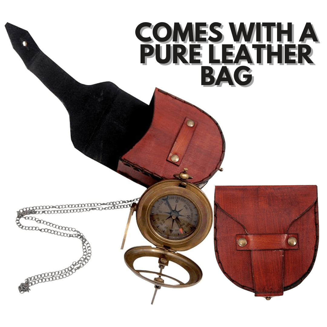 The rich, supple leather of the case adds a touch of luxury to the ensemble, complementing the brass compass with its timeless elegance. The combination of brass and leather creates a visually stunning juxtaposition, reflecting the rugged yet refined nature of maritime expeditions.