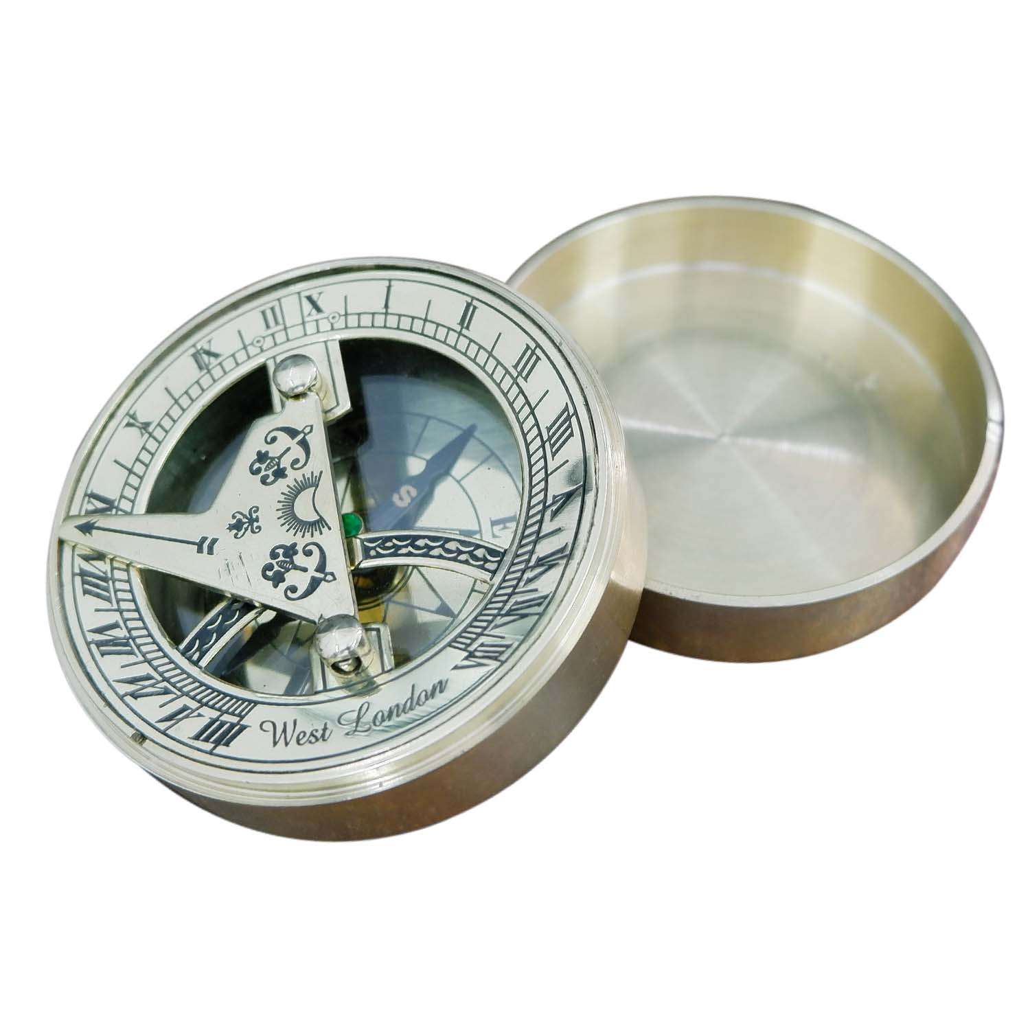NT09 Vintage Compass and Sundial Hiking Compass Outdoor Compass Engraved Compass Antique Nautical Solid Brass