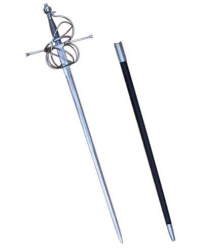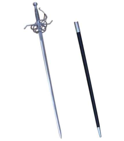 A typical Musketeer’s rapier featured a long, slender blade, often exceeding 40 inches, with a swept or cup hilt for hand protection. This design allowed for swift thrusts and defensive maneuvers, fitting perfectly with the fencing techniques of the era. The RP20 Musketeers Rapier replicates these characteristics, offering a historically inspired look with a balance between elegance and practicality.