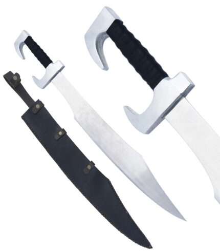 22 Inches High Carbon Steel Hand Polished Half Tang Bolt Welded Blade. Brass Hilt & Spoon. Plastic Grip Artificial Leather Covered. Metal Scabbard Hand Polished.