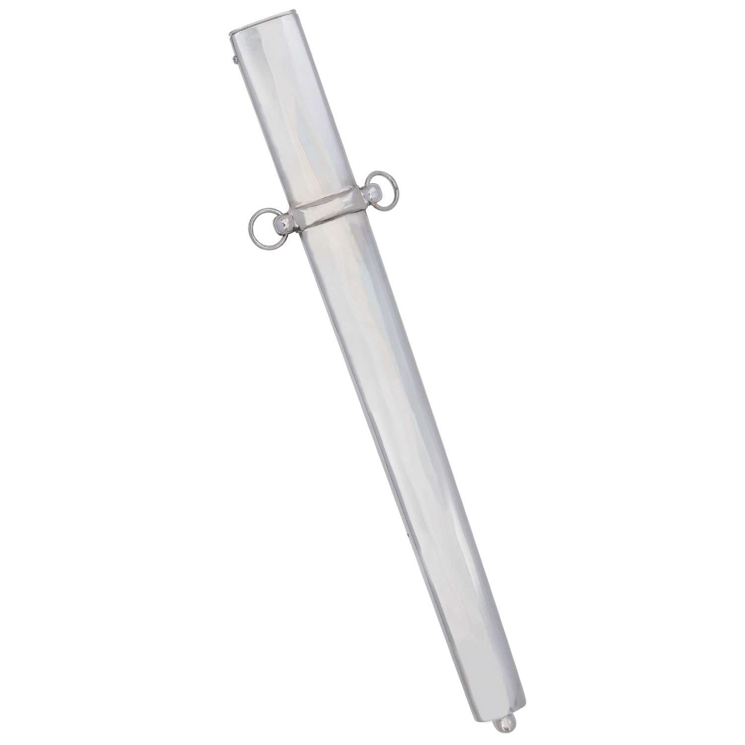 Wrapped in faux black leather, the grip ensures a secure hold while adding contrast to the sword’s shining silver tones. The pommel, shaped like a blooming lotus bud, completes the royal theme, balancing the sword physically and visually.