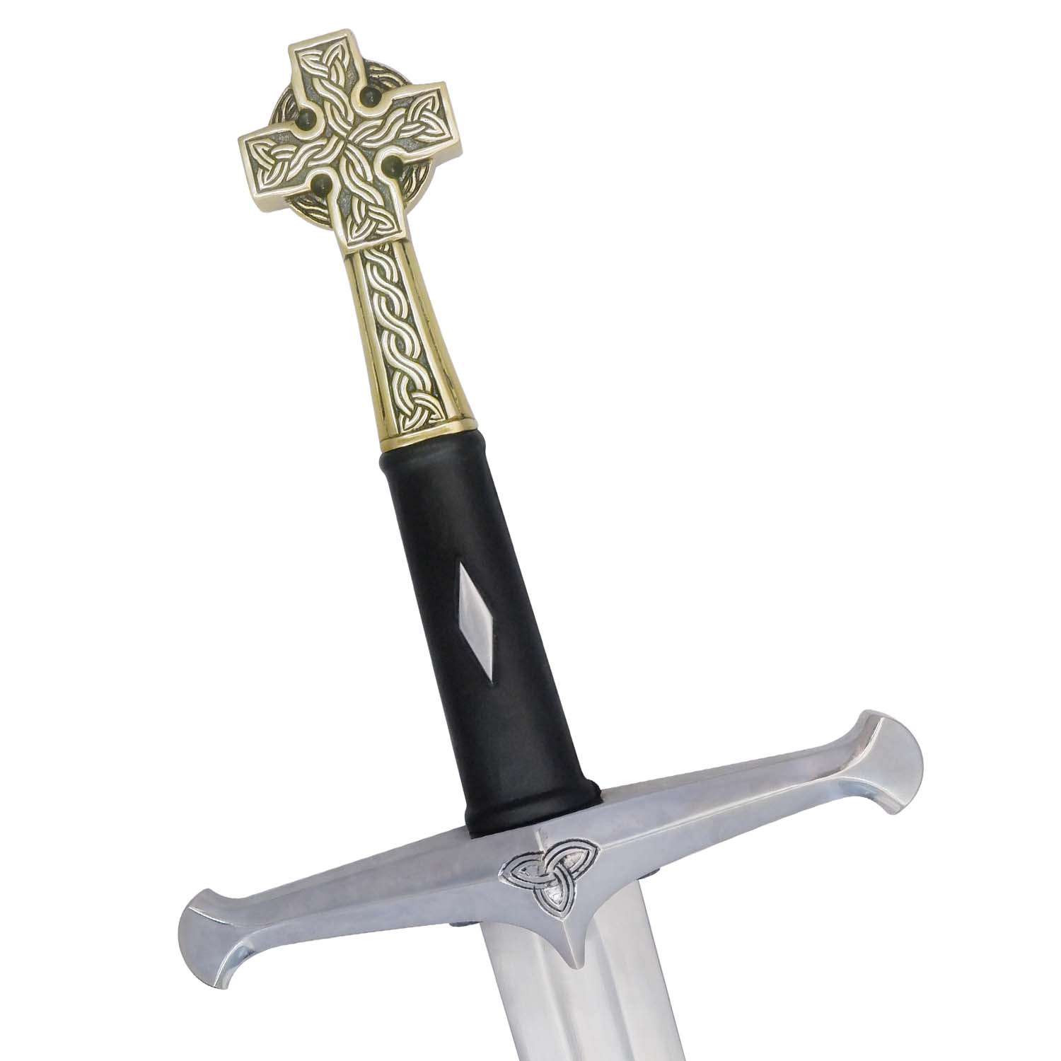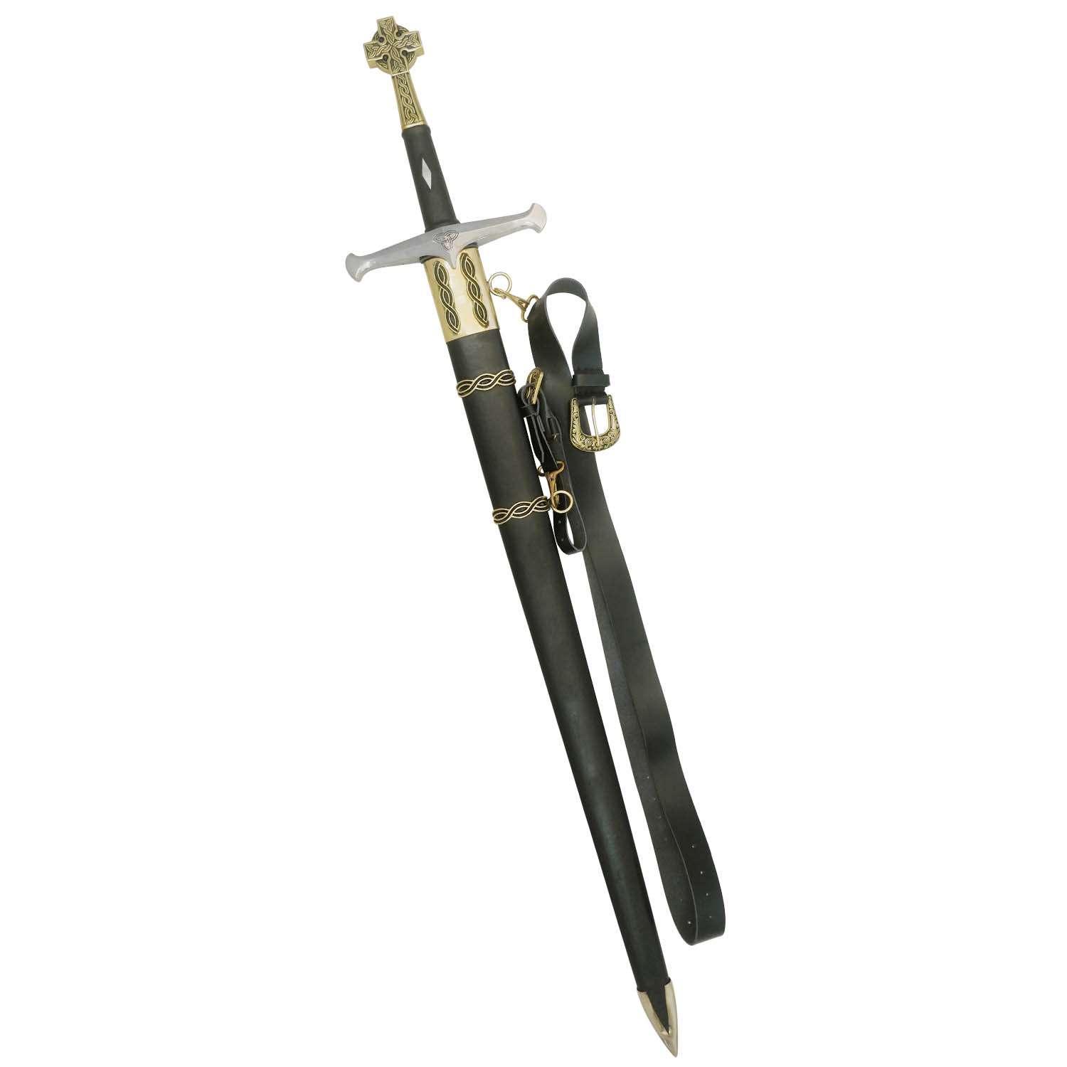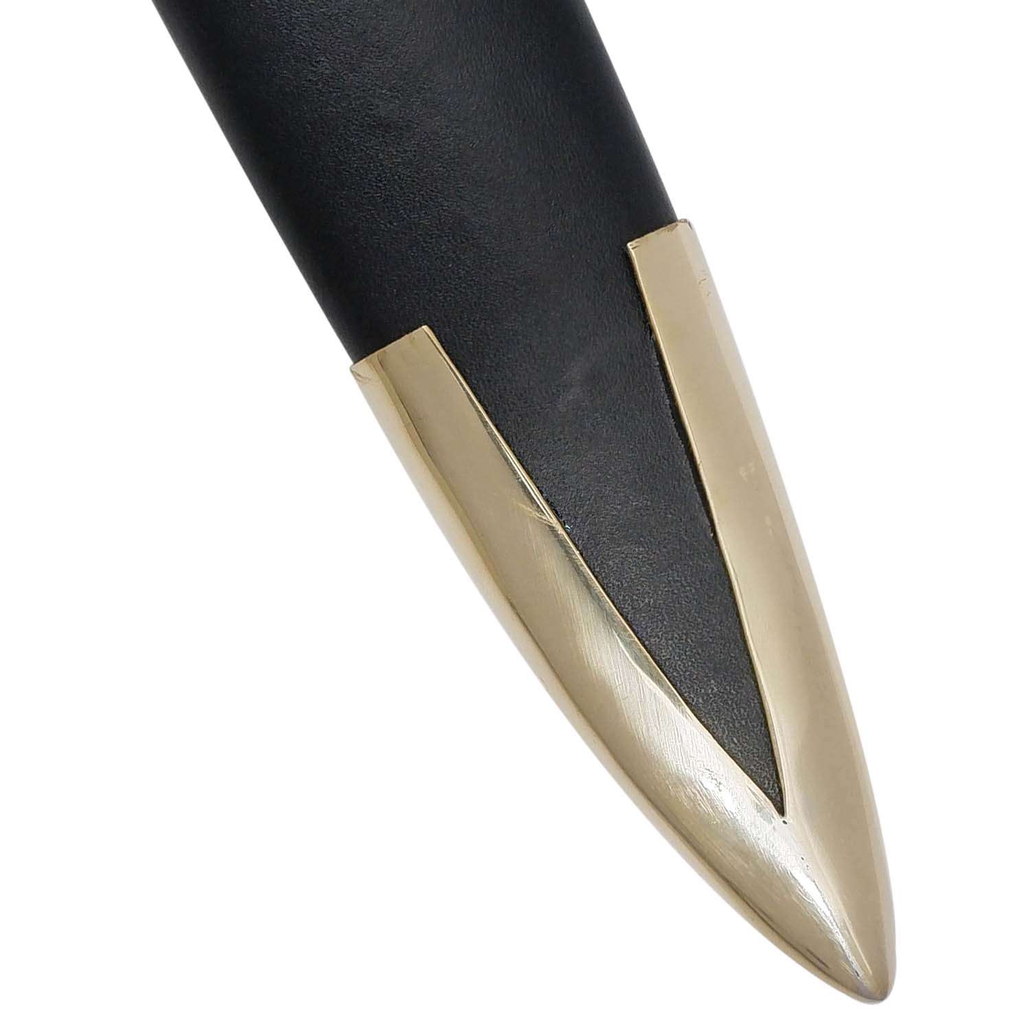 - Handle: Leather-wrapped grip with cruciform guard and brass pommel
