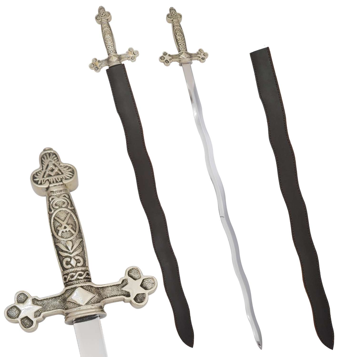 The hilt incorporates detailed Masonic engravings, such as the square and compass, the all-seeing eye, or the blazing star. These sacred emblems are often etched into the guard or inlaid into the grip. The handle, crafted from polished hardwood or wrapped in leather, ensures a firm hold and complements the design.