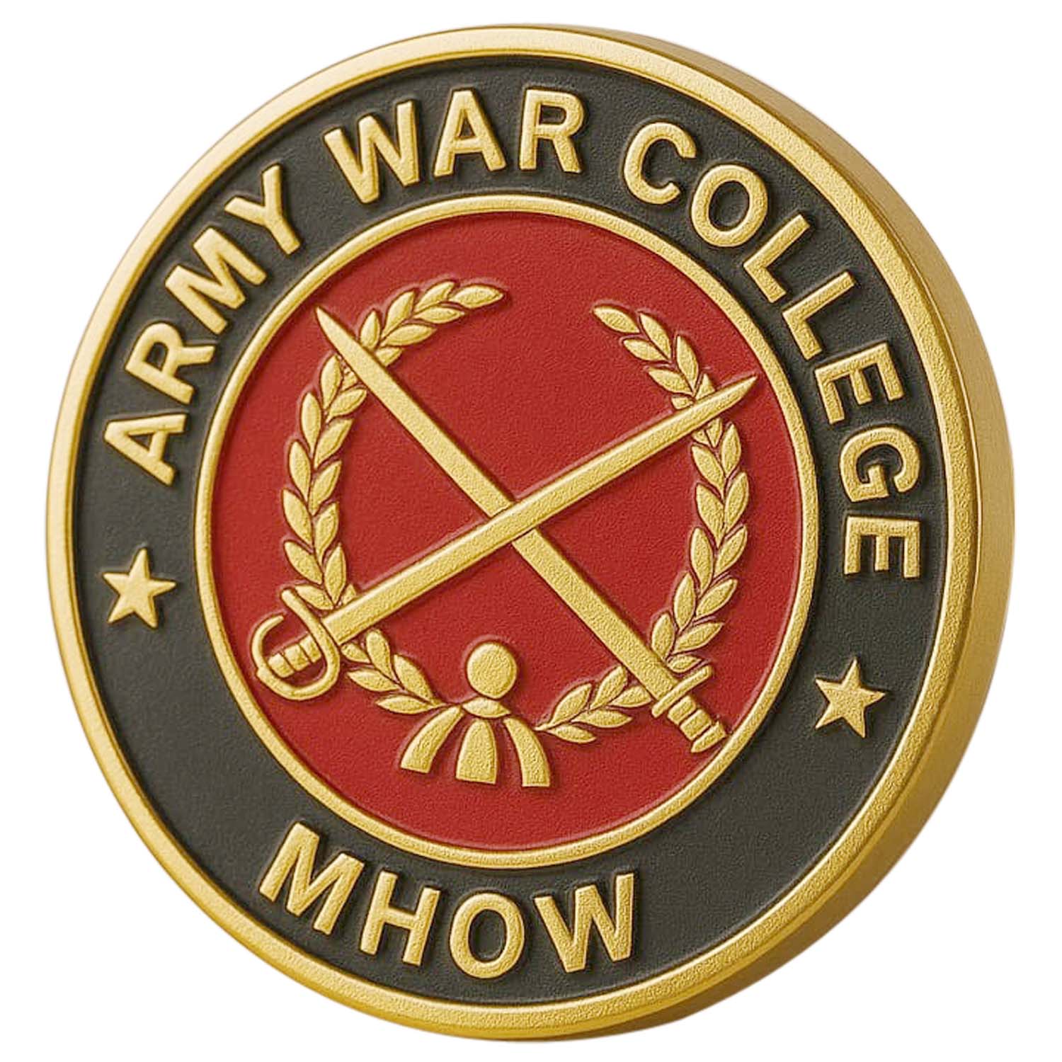 The TM03 Army War College Heritage Emblem is a distinguished tribute inspired by the legacy of the Army War College, located in Mhow. This premium emblem reflects discipline, strategy, and excellence—core values of one of India’s most respected military training institutions. Designed with a bold circular layout, the emblem showcases crossed swords, a laurel wreath, and a commanding central motif that symbolizes victory and honor.